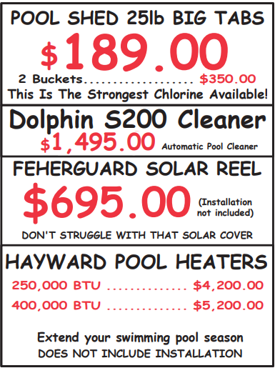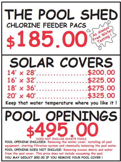 At The Pool Shed, we offer a variety of specials throughout the season so you can enjoy your pool as much as possible. Keep an eye on this page to stay updated on our seasonal specials.